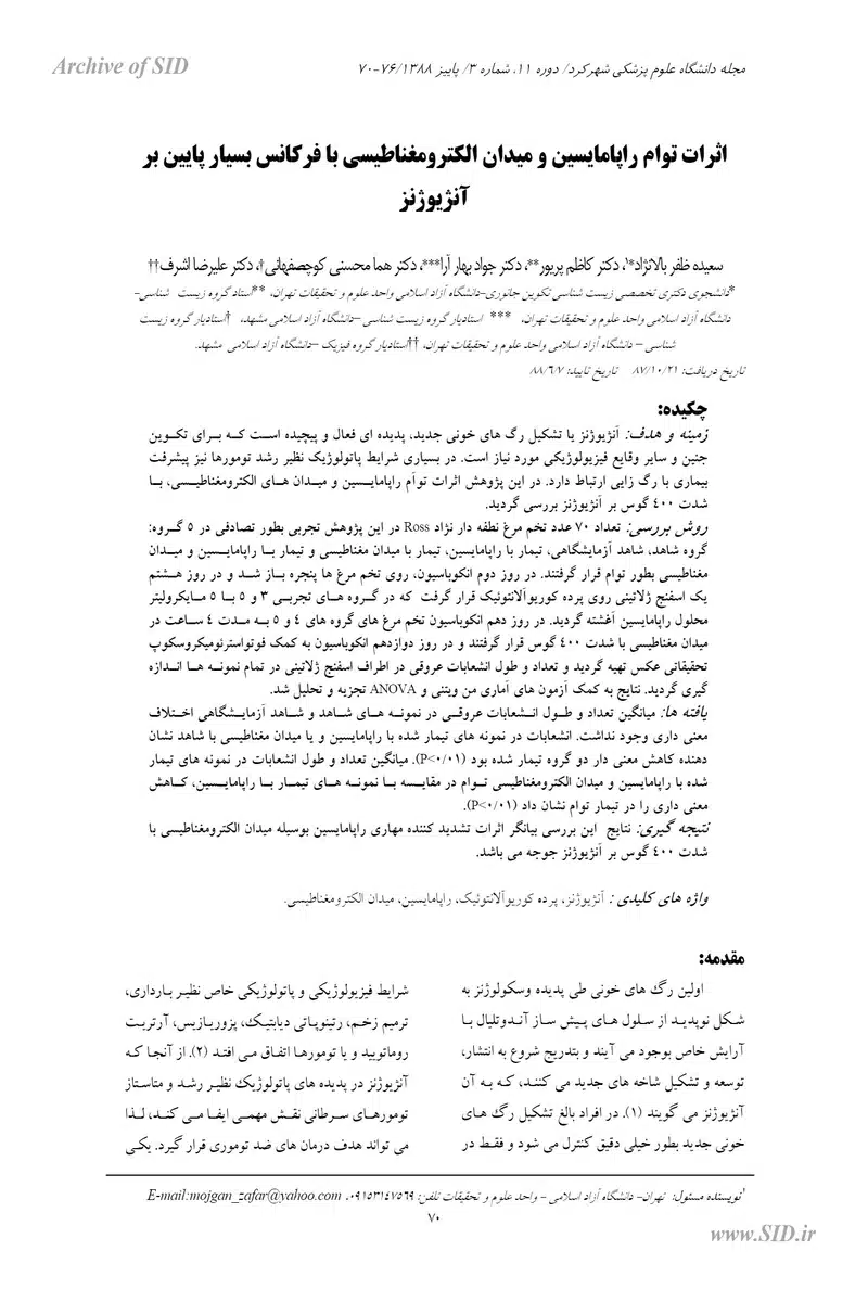 Authors: BALANEZHAD S ZAFAR,Kazem Parivar,Javad Baharara,KOUCHESFAHANI HOMA MOHSENI,ALI REZA ASHRAF