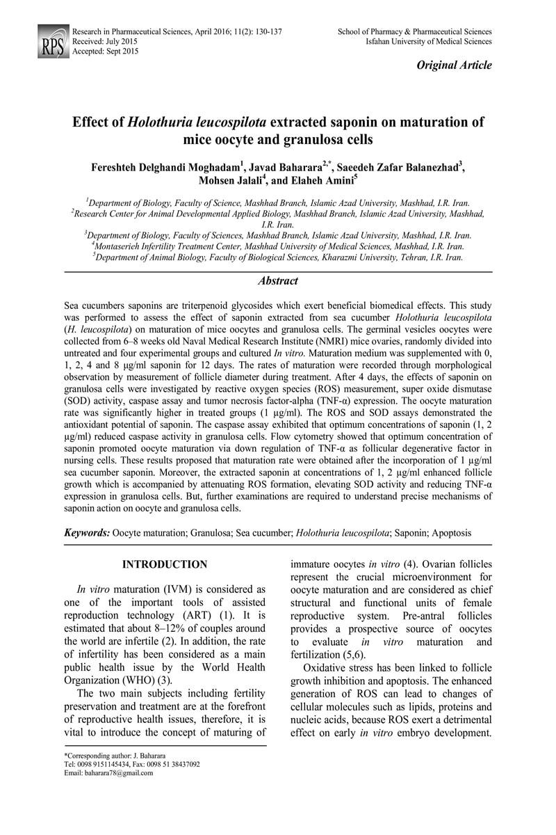 Effect of Holothuria leucospilota extracted saponin on maturation of mice oocyte and granulosa cells