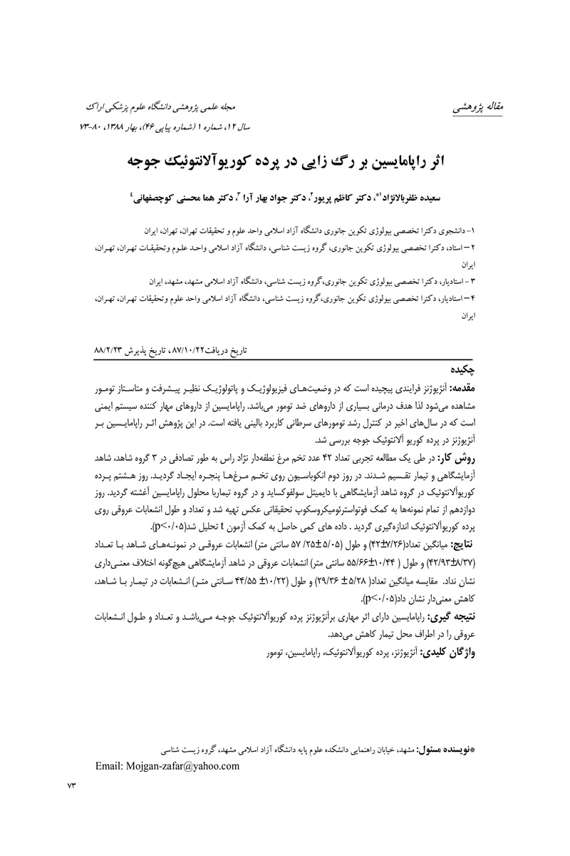 Authors: Saeedeh Zafar Balanejad, Kazem Parivar, Javad Baharara, Homa Mohseni Koochesfahani